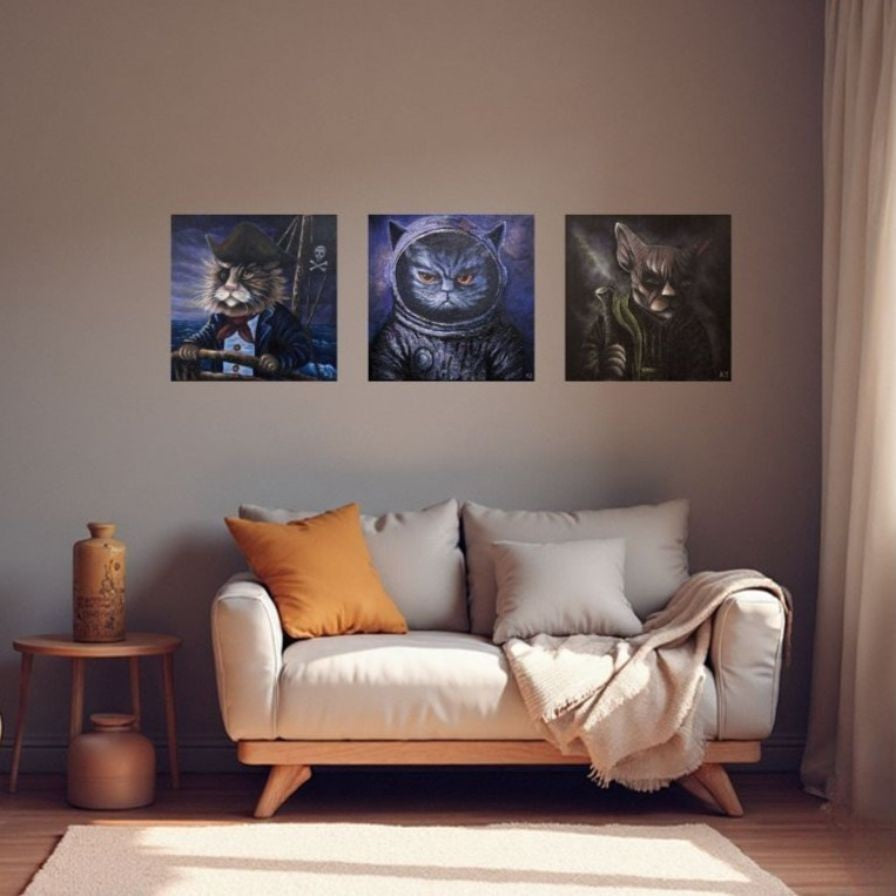Ideal for those who want their art to shine, literally. Perfect for modern interiors, statement shelves, or anyone who loves sleek design and feline drama.