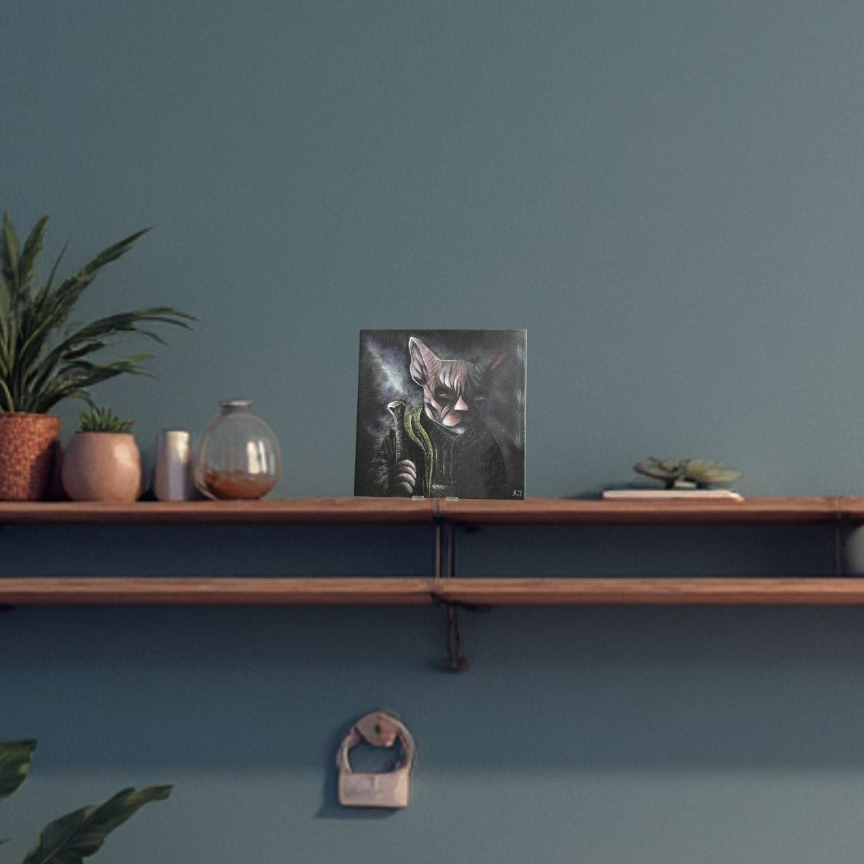 Each 30×30 cm print delivers crisp detail and rich contrast, reflecting the calm authority and quiet depth of the original painting. Display it on a wall or shelf — no frame required, though a simple frame is recommended for extra protection, as Kapa is more delicate than canvas or acrylic.